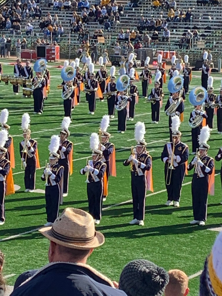 We suffered through watching the first half of the football game…and then watched the Halftime Show. I was excited that we sat on the correct side of the field and I was able to pick Anna out pretty easily. She is the second trumpet from the left in this picture