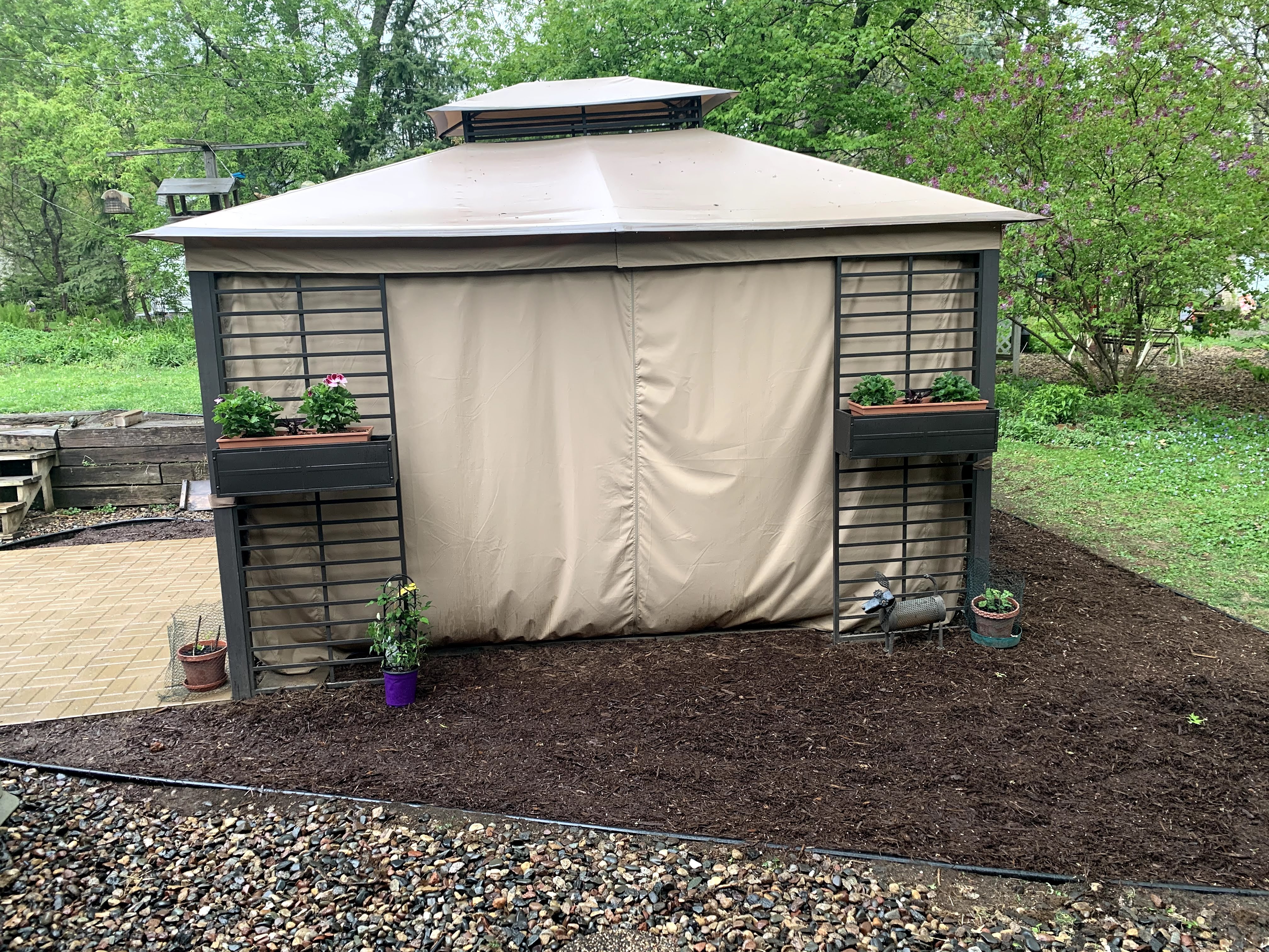 I have been trying to gather up some motivation to get out in my yard. We have a gazebo that was always a bit of an oasis for us that we spent a lot of time in…especially the past two summers. I always looked forward to getting it all set up for the summer. Usually as soon as I thought it was done snowing I would be out there getting the roof and the walls up…planting my pots…enjoying evenings or early mornings by the fire table. This year I look out at my yard and all I see is a long list of “stuff” to do….either by myself or bugging the boys to help me.