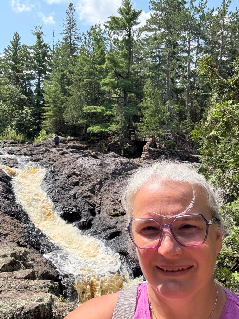 One morning we woke up to a pretty hefty breeze coming in off the lake. We decided it was a good day to load up in the Bronco and go exploring. We went to Amnicon Falls State Park and Pattison State Park. I loved Amnicon. It’s so gorgeous. The river is rapids and little falls one right after the other. Lots of opportunities for scampering on rocks…and wading on in for the dogs. Pattison is home to the tallest waterfall in Wisconsin…Manitou Falls. It was pretty, but Amnicon really spoke to my soul. I need to go back there and really spend some time.